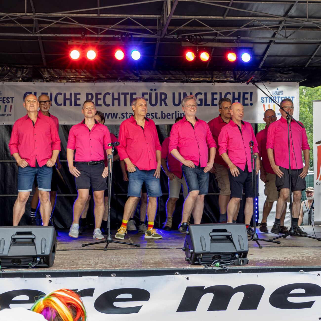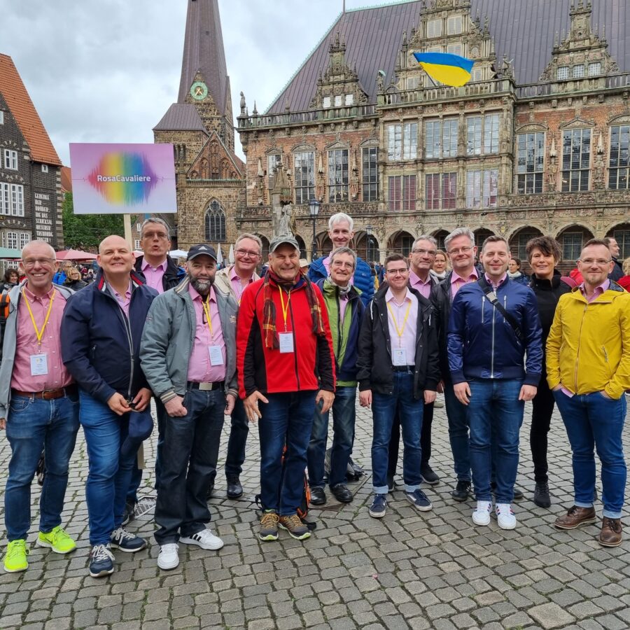 The RosaCavaliere were founded in 1990 and represent the awakening and liberation of the LGBTQI+ movement in Germany in the 1990s. With a repertoire ranging from pop to classical that impressively combines music and political engagement while never forgetting the fun. We stay Pink.