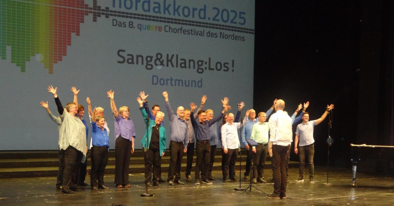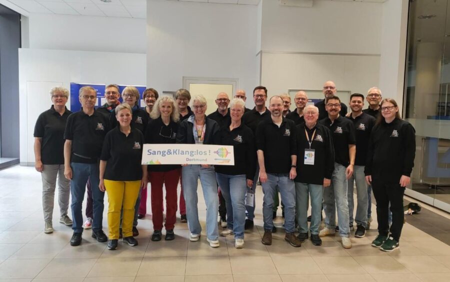 Notre chorale « Sang&Klang : Los ! » fait partie du KCR (Kommunikations Centrum Ruhr e.V.) de Dortmund. Actuellement, une trentaine de personnes queer de la région de Dortmund chantent avec nous, s’amusent et prennent beaucoup de plaisir. Plusieurs représentations chaque année garantissent un engagement continu dans les répétitions une fois par semaine
