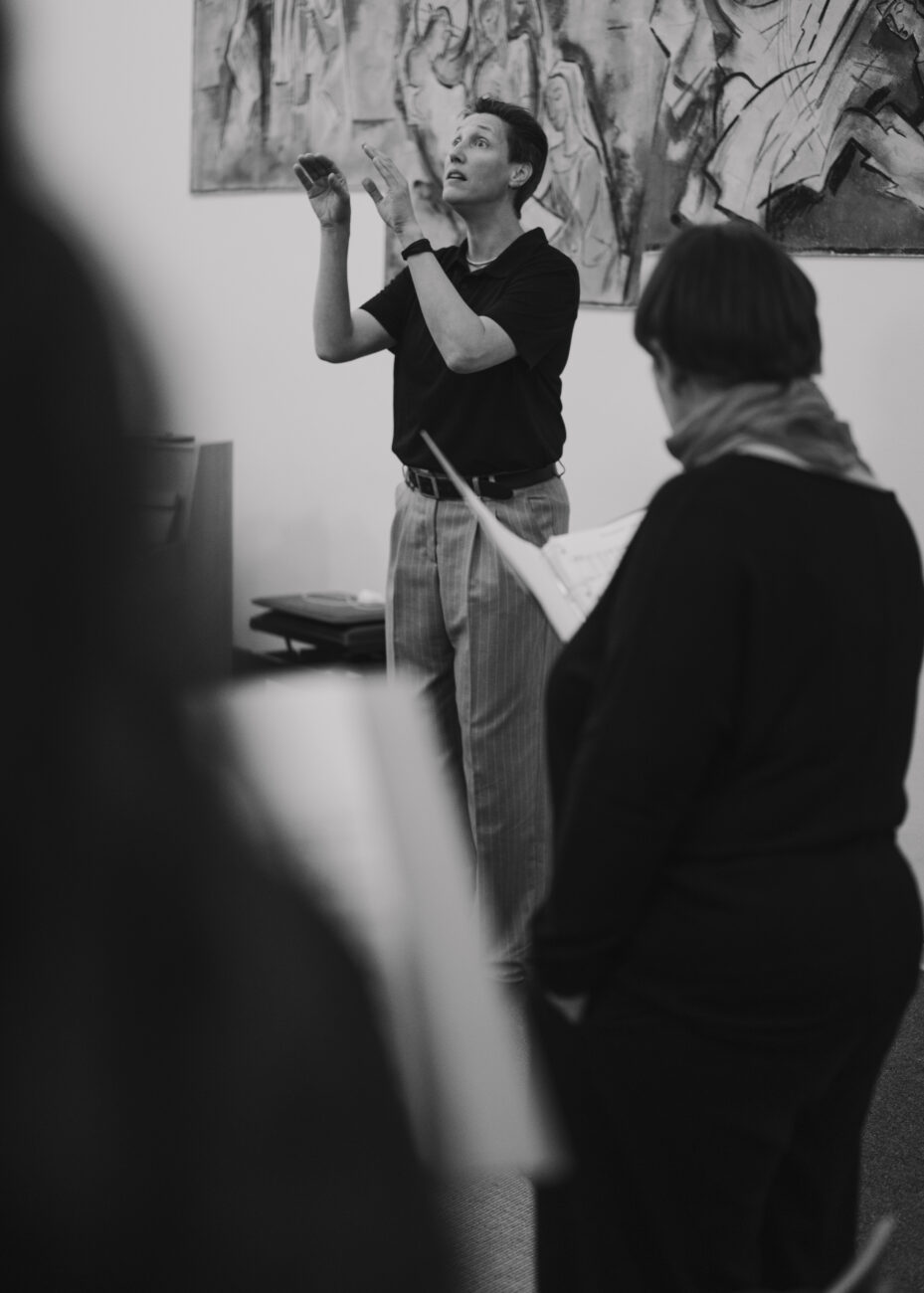Onze wekelijkse repetities, repetitiedagen en -weekenden en aparte zanggroepssessies zijn niet alleen een gelegenheid om ons geluid te verfijnen en muzikaal te groeien, maar ook een moment voor gemeenschap en uitwisseling. Respect en discriminatiegevoelige interacties staan bij ons centraal: elk individu draagt ertoe bij dat ons koor zich ontwikkelt tot een veilige plek voor iedereen.
