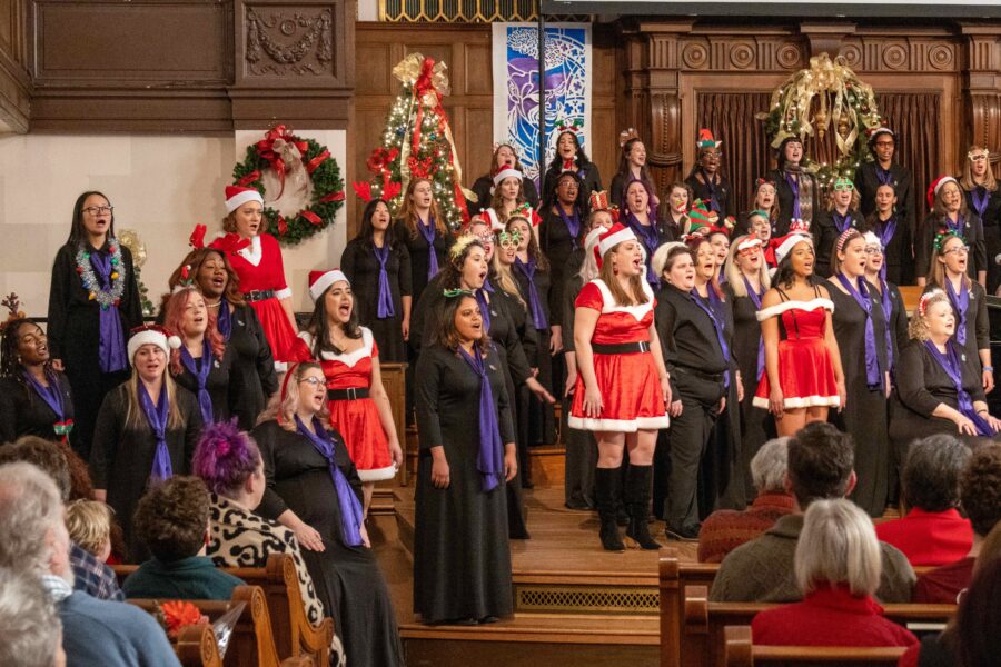We hebben ons altijd sterk ingezet om iets te betekenen voor de maatschappij. We zingen elk jaar voor de Ovarian Cancer Alliance Teal Trot ter ere van twee van onze leden die aan deze vreselijke ziekte zijn overleden. We hebben ook een voortdurende samenwerking met een lokale vrouwengevangenis. We gaan naar hun locatie en treden voor hen op, en werken met een kleine groep gedetineerden die dan met ons meezingen! Het is een van de meest betekenisvolle dingen die we doen! Daarnaast werken we samen met lokale liefdadigheidsinstellingen om geld en spullen in te zamelen ter ondersteuning van hun werk.